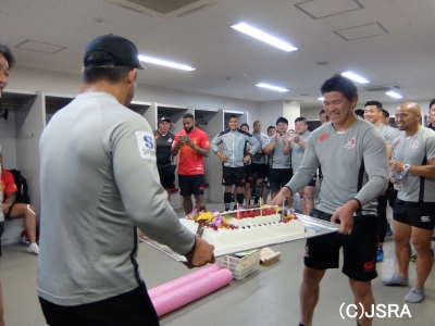 【大野選手ハッピーバースデー!】 6日は秩父宮でサンウルブズのフォース戦前日練習を取材しました。 昨日のブログでも紹介しましたが、6日は大野均選手の38歳の誕生日です。 6日の練習前、秩父宮ラグビー場のロッカーで、堀江翔太選手&立川理道選手から、サプライズで特製お誕生日おめでとうケーキがプレゼントされたそうです! ロッカールームの様子の写真は、JSRA(ジャパンエスアール)提供。 そんなあとでも、練習ではあくまでも淡々とした表情で、ハードワークし続けます。 ライ...