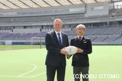 【ギルピンさん味スタ視察】 19日は味スタへ。 ワールドラグビー(旧IRB)のワールドカップ統括責任者、アラン・ギルピンさんのワールドカップ開催スタジアム視察ブリーフィングに行ってきました。 (東京との秋山副知事と。左がアラン・ギルピンさんです) この視察は4月上旬から、大分−豊田−静岡−札幌−熊本−福岡−東大阪−東京−横浜−神戸という順番で、ワールドラグビーから約10人、日本側組織委員会から約10人、あわせて20人程度のスタッフが各会場に出向き、場内設備などを巡回視察(スタジアムをこれから造る釜石と、...