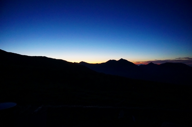 2019.08.06 今日は、五色ヶ原より鳶山2616mに登り、越中沢乗越2356mまでいやな下りを下り、越中沢岳2592m まで登り、足元の悪い下りから更にスゴの頭まで登り返して、スゴ乗越まで300m下り、スゴ乗越小屋まで 登り返す、アップダウンの道です。 日の出を待ちます 明るくなります 食堂で朝食中に 窓越に 朝食後(朝弁の人が多かった) 出発 槍ヶ岳が見え...