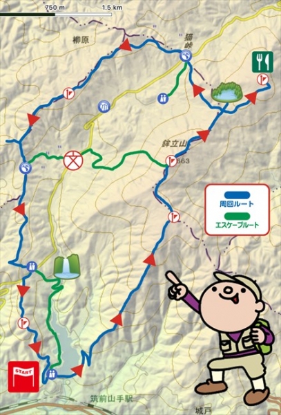 JUGEMテーマ:山行記録 以前から下見を繰り返していた篠栗五山周回イベントを実行してきました。 日程が変更になったため参加者は減りましたがその分予定よりも早く回れそうです。 スタート(ゴール)は鳴淵ダム駐車場で反時計回りに「畝原山〜鉾立山〜菅嶽〜三ツ頭山〜飯盛山」の5つの山を周ります。 途中、「鉾立山手前」「横峠」「樹芸の森」から舗装路を通ってエスケープ可能です。 宗像篠栗線(92号線)まで出ればタクシーも呼べます。 周回ルートの中央に一般...