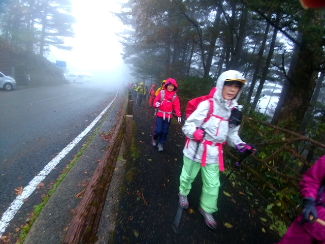 2018.10.02 台風の影響か、夜半はずっと風、屋根には雨音も。 起きると、窓の外を眺めて騒いでいる。 早くから、朝食で並んだが、天気が悪いのか出かける人はまばら。 雨具の上下を着て 雷鳥沢へ下ります 23 ...