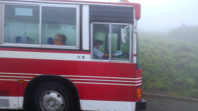 2018.06.22 天気予報は、雨風。風は特に16m/sec バスに乗り換え、8合目登山口へ 下るバスに乗る人がすでにいる。(天気悪いんだ) 登らない格好の人もいる。 また、昨日森吉で会った宮古の人も様子見でした。 フードもかぶり 手書きのバスの時刻表 (事情があるのでしょう。天気とか) 西風なのでここは、また山体の北側なので弱い風 雪...