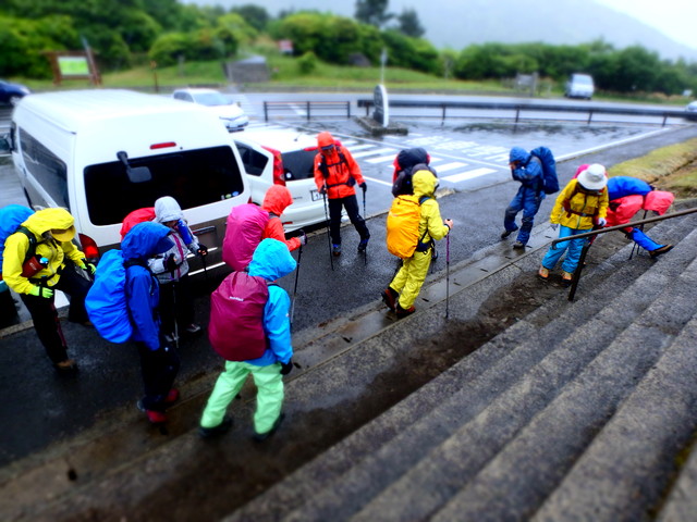 2018.06.05 日本百名山の大分県の久住山へ登りました 梅雨入りしたばかりで、雨の予報です。 昼前からの登山開始です。 雨の中、牧ノ戸峠で準備 登山口 駐車場が眼下に 久住山方面は見えません &nb...