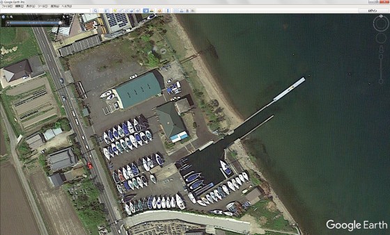2018年9月16日(日曜日)。このところ天気とスケジュールのタイミングが悪くて琵琶湖へセーリングに出かけられません。そこで Google Earth Proを起動して琵琶湖の周辺のあちらこちらを拡大表示して眺めて遊んでいました。 沖島、志賀沖観測塔、志賀ヨットクラブなどは、お気に入りの場所として登録しています。 そのお気に入りの場所の一つ、志賀ヨットクラブの全景です。 上の画像をクリックすると大サイズ(1920*1160)画像を表示 よく見たら、私の愛艇BUDDYが定位置に見えません。ということは...