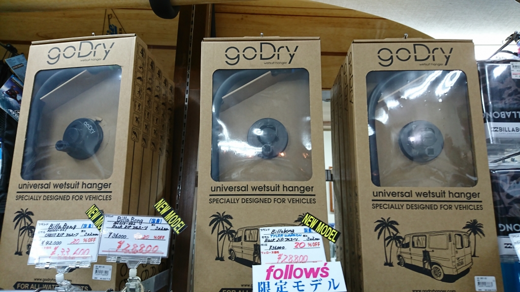 JUGEMテーマ:サーフィン JUGEMテーマ:マリンスポーツ goDry(ゴードライ)入荷 新製品です。 吸盤で車のボディーに引っ付けるウェットスーツ用ハンガーです。 車のボディーにウェットスーツが、触れないので車もウェットも 汚れません。 カラーは3色! フォローズ価格¥6.800 https://item.rakuten.co.jp/auc-follows/su-item-godry-001/ fol...