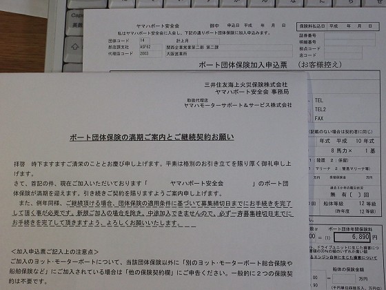 2016年2月2日(火曜日)。昨日、ヤマハボート安全会事務局から「ボート団体保険の満期ご案内とご継続契約お願い」と言う文書が届きました。 前契約通りということで、すべての箇所に印字済みの書式が同封されていますので、あとはコースを選択して書類を返送、保険料を支払うだけです。 従来通り、「充実補償コース」を選び、同封の振替払込書で近所のゆうちょ銀行から保険料を振り込みました。 手続完了。 JUGEMテーマ:マリンスポーツ