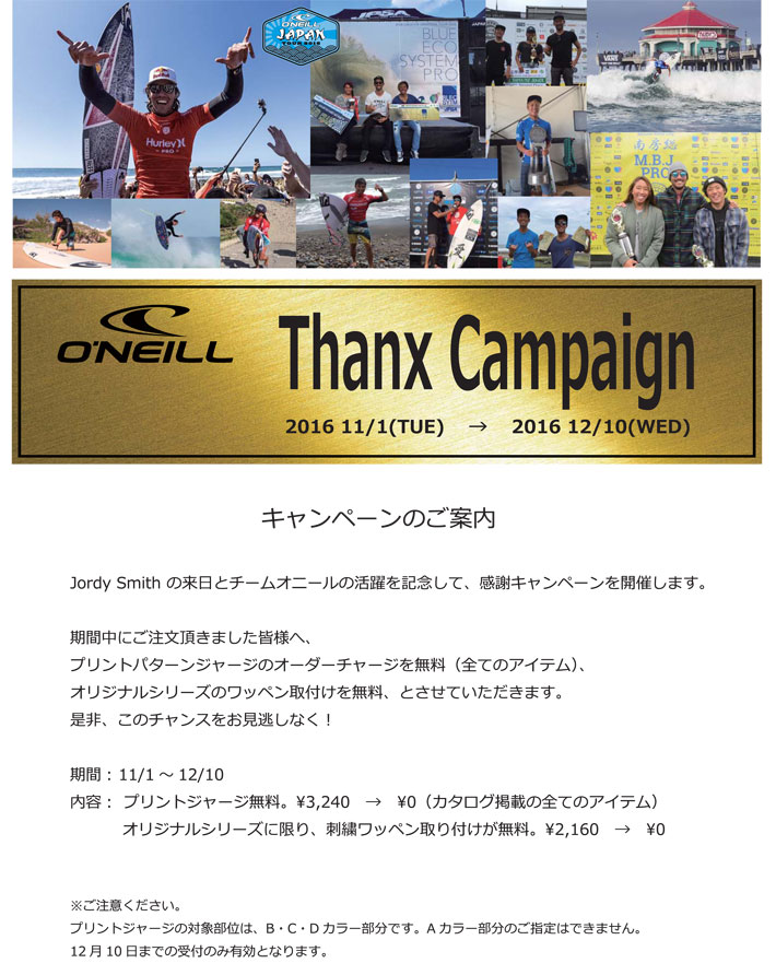 JUGEMテーマ:サーフィン 好評のウェットスーツ オーダーフェアー!! 更にお得なキャンペーン O'neill 本日もこのお得なキャンペーンを聞きつけたお客様からオーダー頂きました プリントジャージ無料です ありがとうございます!!!!!! O'EILLの特徴は裏地の起毛素材FIREWALL23 他社にはない伸縮発熱素材 そしてO'neillセミドライ独自の手首の切り返しとWET一体型のインナー...