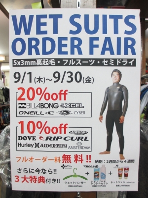 JUGEMテーマ:サーフィン WET SUITS オーダーフェアー 9/30まで オーダーはお早めに!! 各社冬物WETSUITSのカタログも揃いました 各ブランド オーダーの価格目安です BILLABONG 5×3 CHEST ZIP裏起毛 スタンダードモデル 定価 ¥69000 20%off→¥55200 MAXIM 5×3 TIP ZIP裏起毛 ハイグレードモデルDYNA 定価 ¥88000 10%off→¥79200 CYBER 5&tim...
