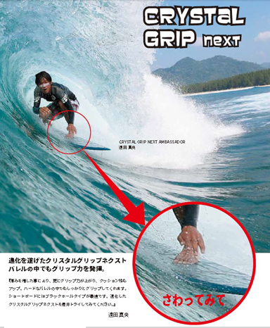JUGEMテーマ:サーフィン こんにちわ 今日は、サーフィンのWAXの代わりになるグリップテープ【CRYSTAL GRIP】のご紹介です 商品自体はグリップの良いシリコンのような素材 1度貼れば、グリップ力が使用頻度にもよりますが1年は持続します WAXのように塗り直しもいらないので海についたらすぐ入れるし、ウェットスーツも汚れません 種類はフラットタイプと穴あきタイプの2種類 当店スタッフは穴あきのブラックホー...