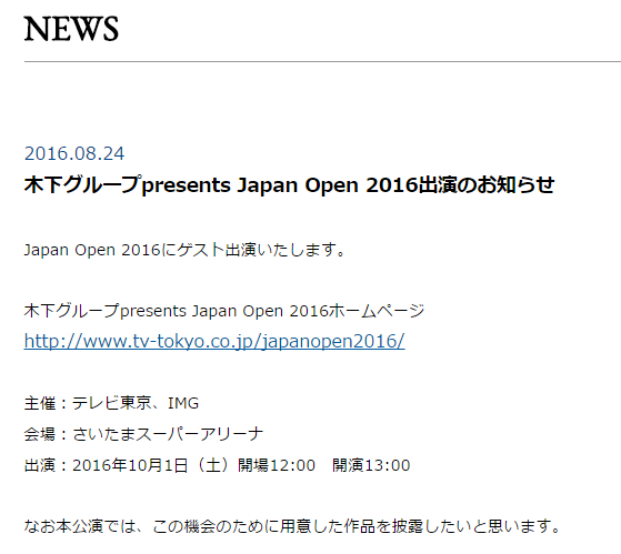 JUGEMテーマ:町田樹 恵子さん、えどさん、めーやんさん、おおとらさん 情報ありがとうございます! (公式HPより http://tatsuki-machida.com/news/index.html#20160824_jo) なんと!! Japan Open に出るとは!! え、カーニバル・オン・アイスにも出るんですよね? ということは、Japan Openで新作を披露し CaOIでは「あなたに逢いたくて」最終公演をするっていうことですよね? うおー! やばい! うおー!! ...