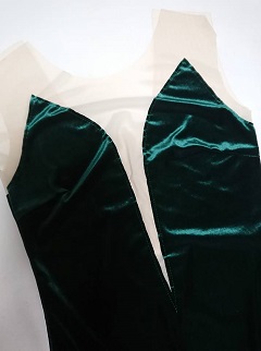 ベロアとパワーネットをつなぐだけのお仕立て 左右対称で細長い山型と胸の中央の細いV字 基本の力量を試されているような気分です。 思うように作業時間が取れなくて あたふたしているところにこの作業は緊張しました。 でも良い緊張感でした。 JUGEMテーマ:レオタード