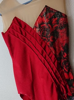 タックをとらなくても スパンかラインストーンを並べれば同じようなデザインになるのですが・・・ 後ろは1本タックが入っています。 バラが入っていなくても赤黒できれいなプリント地です。 もう少し余っているので小さいレオタードを作りたいな。 JUGEMテーマ:レオタード