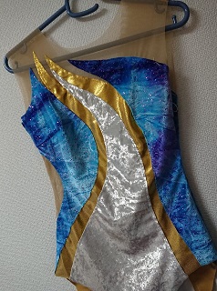細長く残った生地をなんとか使いたくて こんなデザインにしてみました。 右脇をあけてパワーネットにするか迷ったのですが 青の量が多くて重たい感じがしたのであけました。 JUGEMテーマ:レオタード