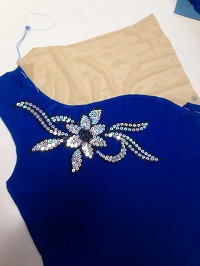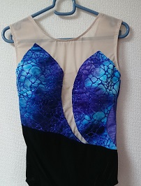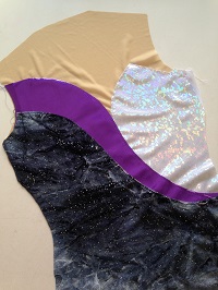 絞り染めに箔の粒が付いているベロアです。 紫のハイメタリックという生地とシルバーのホログラムラメを組み合わせました。 紫の部分が多いので少し切ったのですが まだ多い。 ゴールドのレースやブレードを付けたりすればいいかな。 既製レオタードは余り物で作ることにしているので ショップにはこのまま出します。 小さいサイズでも1着分取れないけど、捨てるにはもったいないので ローズのミスティサンドと言う生地と白のグリット付きチュー...