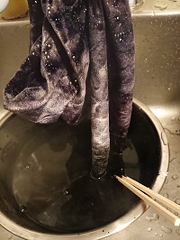 余り布で作ると絞り染めの色合いを選ぶことができません。 後になって、股下のところだけ白いことに気がつきました。 これは変! 染めてみよう。 裏を見ると染まっているのですが 表は真っ白ではなくなったとういうだけ さてどうしよう。 ウエストにパワーネットをはさんで黒のベロアと切り替えようかな。 この投稿は初めてタブレットからしています。 タブレットはパソコンではなくて、大きなスマホですね。 パソコンより投稿の機能が少ない。 &nbs...