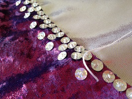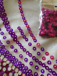 スパンは規則的に付けるのがラクです。 一番外側はランダムに付けます。 さて反対側はどうしましょう。 とりあえず紫を縁に付けます。 頭に中に描いていることは果たして布の上でもきれいか 明日は針仕事はお休みです。 JUGEMテーマ:レオタード