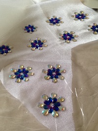 ミラーストーンを薄布に貼り付けて、花モチーフ作りです。 こういう作業は楽しい! この後は先日お仕立てした2着のお直しです。 肩幅を小さくしました。 袖なしの場合、これからは肩幅も採寸してもらいましょう。 お直しの後はスパン付け 明日は1週間後のオカリナ定期発表会に向けてリハーサルです。