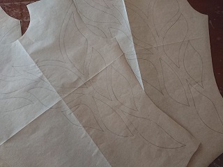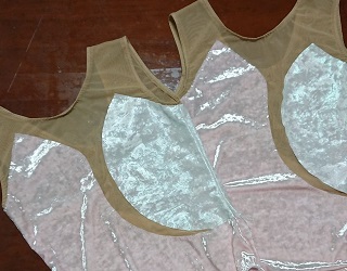 型紙をコピーして 模様を切り抜いて 布に写して シルバーの布を重ねて縁を縫う。 限られた時間でオーダーの型紙作りとお仕立て なかなか進まなくてイライラしてしまいました。 今夜は納得行くまで縫う! と思うと案外早く終わるもの 切り抜きたいけど明日にします。 JUGEMテーマ:レオタード