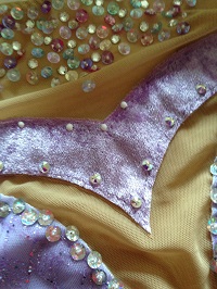 胸のパーツにオーロララインストーンを付けました。 背中のシルバースパンはこんな感じ 斜めから撮るのがいい感じでしょうか JUGEMテーマ:レオタード