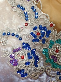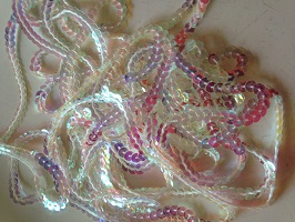三徳で売っているパールスパンがとてもきれいです。 透き通る感じです。 これを付けるとラインストーンよりキラキラです。 ここまでスパンをつけて脇も縫い合わせました。 まだまだ付けます。 JUGEMテーマ:レオタード