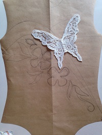 こちらをご希望 ペアなのでこちら 身長はほぼ同じでも横幅と体型が違う2人で 片方の方にはダーツを付けたいのですが、できるかどうか。 まずダーツのない方の型紙に図案を描いて ダーツを入れられるかどうか確認 大丈夫みたいなので、同じ図案になるように描いていきます。 これは後ろ 私の中では同じ雰囲気になるように、修正していきます。 時間がかかります。 この作業ができたら気分的には半分できたようなものです。 ...