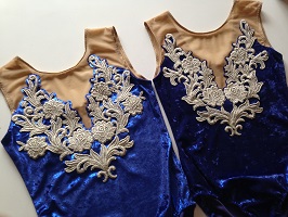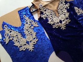 お手伝いするチームの子の衣装です。 大人サイズなのでレースも3組使いました。 同じレースのハナコンメタリックベロアをSHOPに出していましたが お買い上げいただきました。 ツーショットです。 既製レオタードの方はサイズが合わないので 前後を離すところまでほどいて補正する予定でした。 チームの子のモチーフを間違って多く購入してしまったので サイズに合わせてお仕立することにしました。 これまでにもありましたが、 同じデザインのレオタードは呼び合うようです。 JUGEMテーマ:レオター...