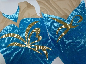 こちらをご希望です。 私もこの衣装は好きです。鳥みたいで蝶々みたいでハートがあって 確か小学6年生のペアだったと記憶しているのですが 今回は小さいサイズ 縮小するとごちゃごちゃしてしまうので少し変えました。 ベロアに下にラメプリントを重ねて、図案に沿ってミシンをかけます。 切り抜くときがおもしろいけど ただ印に沿って切るだけではきれいな形が出ません。 しっかり図案を意識して切り抜いていきます。 ソロなので気が楽です。 紫のときもゴールドの色にこだわって布を探しました。 今回はこれ...