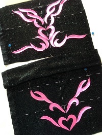 前後のモチーフが脇でつながるよう 後のモチーフは脇を縫い合わせてから貼りました。 こんなことしないでも型紙通りに作れば合うはず ベロアだから毛足でずれるかもしれないので、こうします。 ぴたっと合わせたい! スパンを付けてからモチーフの縁で余分な布を切り落とします。 JUGEMテーマ:レオタード