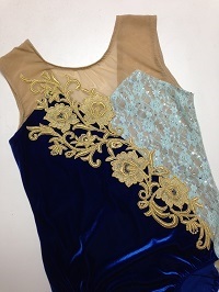 ベロアとレース地の斜め切替えのサイズオーダーでしたが モチーフと髪飾りもご希望とのことで これまで使ったことのないレースモチーフを使いました。 (左右対称や胸のところだけでは色違いの白を使ったことはあります) 実物はもっとゴールドが際立っていてきれいです。 レースモチーフが大きいので小さいサイズにはできないかもしれませんが サイズオーダーとしてSHOPに出したいと思います。 髪飾りです。 JUGEMテーマ:レオタード