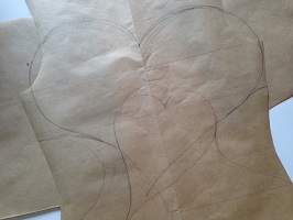 昨日のペアもそうですが 辻褄があっていてほしい、線がつながっていてほしい ハートが並んでいるその背景もハートの形をしていて 切り替えの線はその上にある 型紙の下に紙を敷いて、大きなハートを描いてみます。 ハートは前にも書いたように難しい 野暮ったくならないように、少し色気もほしい 身体の大きさが違うペアの型紙をやっと描き終えて 布に写していったのですが これはどうすればきれいに仕上がるのでしょう? 単純に型紙通り切って重なればいいのだけど・・・ 考えすぎもよくないかもしれません。 J...
