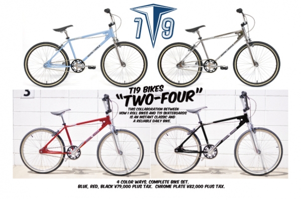JUGEMテーマ:スケボー ついに入荷しました! 【T19 x HOW I ROLL“TWO-FOUR”】 【T-19】と【HOW I ROLL】のコラボモデルです。 通常のBMXより大きめの24インチのホイールサイズは走破性も高く、街乗りしながらかなり遊べます! 2018年モデルはフレームカラー ”CHROME”, “BLACK”, “RED”, “Lt BLUE” の4色。 今回は問い合わせの多かった「クロームカラー」が登場です。 スタイリッシュなシルエットです! ハンドルはT19 CR-M使...