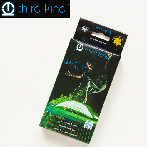 最近はだいぶ涼しくなり、スケートボードには最適な季節になりましたよね さて、今回はThird Kind Skate Lights [サードカインド スケートライト]のご案内です。 こちらは、7色のLEDのフラッシュでスケートをスタイリッシュに演出が出来て、固定かオートサイクルで発光を変更可能 発光時間:約10時間 充電時間:2時間〜5時間 トラッックとデッキの間に設置して、LEDライトの部分は両面テープで付ける形となります。 充電は、付属のUSBコードからパソコンに接続して、またはiPhone用の充電器等を利用して...