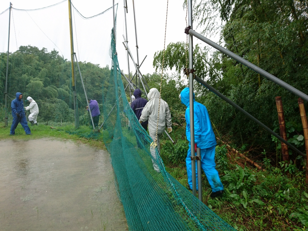 JUGEMテーマ:野球 youパパです 大型の台風が近づいてきています。 もちろん本日の練習は中止です。 選手たちは昨日に続いてのOFF、さぞ喜んでいるでしょう!! で、父たちは台風が来る前にネットを降ろす作業です。 9時の集合で、缶コーヒーを飲んだら作業開始です。 なぜか、集合時点でS口コーチのテンションがかなり高いですが、きっと台風が来てワクワクする小学生と同じ感じですね。 ネットを降ろしてまわります。みな、カッパを着ていますが、A沼パパ...