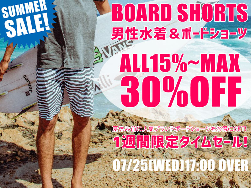 JUGEMテーマ:Skate board 今日は待ちに待った金曜日! 今週も期間限定 セール情報をお届けします^^ 2018年も夏到来! というわけでこちら!!! 期間限定サマーセール! 男性水着&ボードショーツ 全品15〜MAX30%OFF!!!! おすすめ品をちょっとご紹介^^ ■ペイントカラーのハイセンスなボードショーツ! 1週間限定SALE!【ボルコム VOLCOM ボードショーツ】MOD EXPOP...