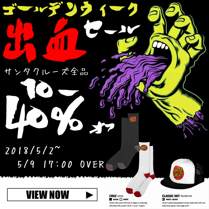 JUGEMテーマ:Skate board ハイサイ! みなさんGWはどうお過ごしでしょうか?? 僕はといえば 仕事とスケボーっていう いつもと変わらない毎日を送っていますw そんな最中の金曜日! いつものセール情報いっちゃいますか! 今週の激アツセールはこちら↓ ※画像をクリックして特設サイトへ!! SANTA CRUZ全品 10-40%OFF!!! デッキも、ステッカーも、Tシャツも安い! ■プールシェイプ...