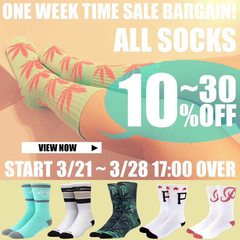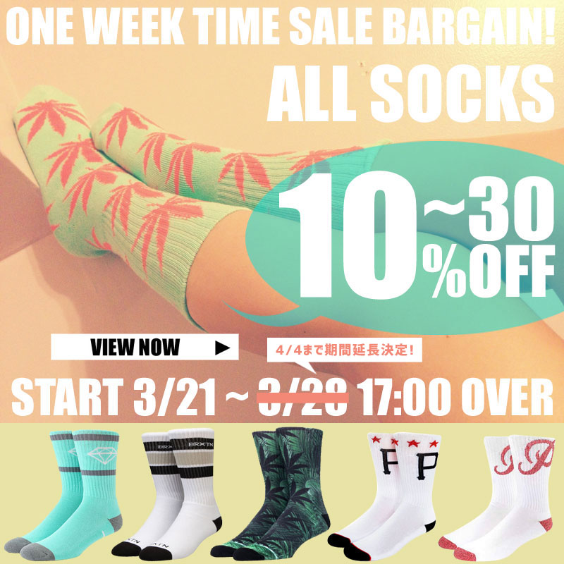 JUGEMテーマ:Skate board ハイサイ! 毎週金曜日恒例の 限定セール情報をお届け! 春といえば オシャレの季節! オシャレは足元から! というわけで 今週はこちら!↓↓ ALL SOCKS 10%〜30%OFF!!! ソックスは みんなの必需品 春っぽくこんなのはいかが? ■【人気】エドテンプルトンのポップでファニーなデザインが魅力! 新生活SALE!【TOY MACHINE ...