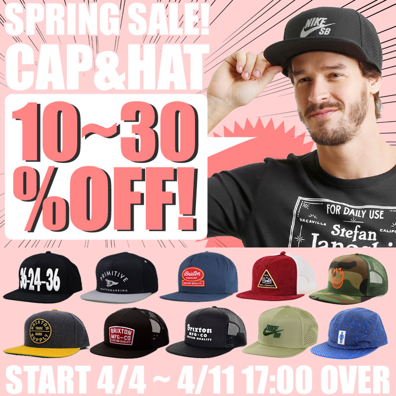 JUGEMテーマ:Skate board ハイサイ! 待ちにまった金曜日! 毎週恒例期間限定セールのお知らせ! 今週はこちらで〜す^^↓ スプリングセール! キャップ&ハットが、10〜30%OFF!!! これから日差しは どんどん強くなります! スケーターにとって キャップはマストアイテム! この機会に気になるブランドを チェックしてみて♪ &nb...