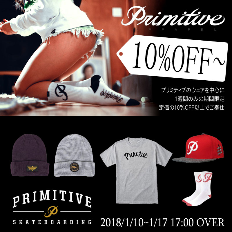 ハイサイ! 今週もやってまいりました 期間限定 週替わりセールのお知らせです! 今週は、、 年収数億円とも言われている (2009年のデータなのでちょっと古いですが、、) ポール・ロドリゲスが立ち上げたブランド PRIMITIVE ウェアを中心に 1週間のみの期間限定セール! 定価の10%オフです!!! 偶然にも 僕が今使っているデッキは PRIMITIVEなんでござんす! ...