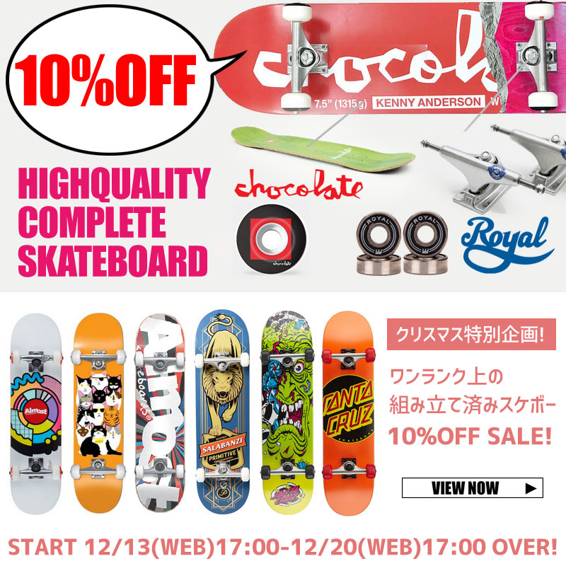 JUGEMテーマ:Skate board ハイサイ! 今週もやってきましたよ! 毎週金曜のスケートボードショップ砂辺 1week限定のお得なセールのお知らせです。 今週は、、こちら! クリスマス特別企画 ワンランク上の組み立て済みスケボー10%OFFセール! 「スケボーって道具が高いんでしょ?」 「気軽にパッと始めたいんだけど、何を買い揃えたらいいの?」  ...