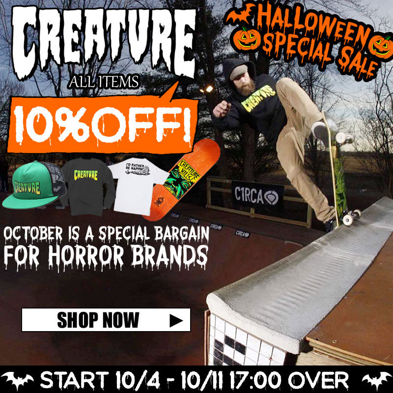 JUGEMテーマ:Skate board でーじやばいって! 10月なのに、沖縄暑いんですけど!? 連日 昼間の気温31度越え って暑すぎる!!! しかーし、暑いのは沖縄の気候だけじゃない!! 今週のスケートボードショップ砂辺のアッツいセールはこちらDEATH!!! ハロウィーンを楽しみまくれ! CREATURE全品10%offセール開催中!!! やっぱりこの時期といえばCREATUREを忘れちゃならないですね! 「CREATURE HALLOWEEN」で検索し...
