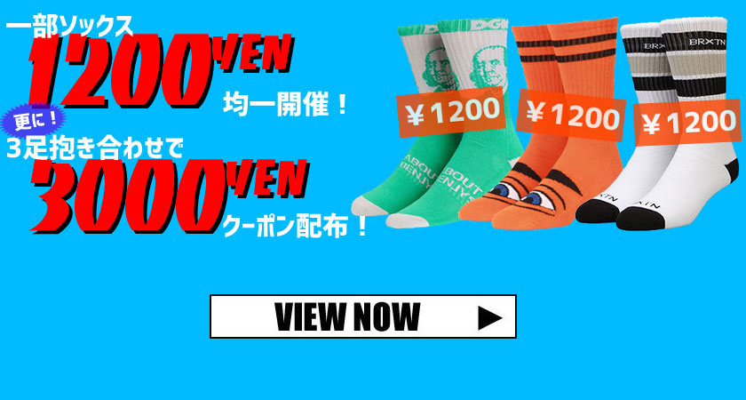 JUGEMテーマ:Skate board ハイサイ! 今回、新たなセール情報をスクープしました! タイトルにもある通り、スケートボードショップ砂辺ではただいま スケート&ストリートブランドソックスを1,200円均一で大奉仕中! さらに3足同時購入で600円お得な3,000円で購入できます!! 秋はオシャレを楽しむ季節、今年は足元にもこだわってみませんか? アンクルパンツの裾からちらりとソックスを覗かせるだけで、オシャレ度と「何かこの人爽やかだし、スケボーうまそ...
