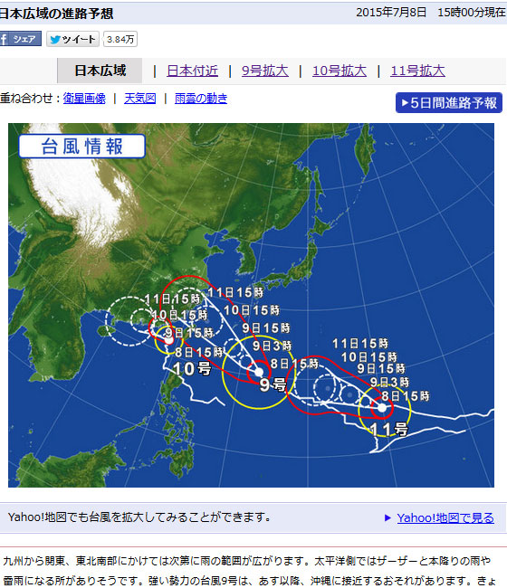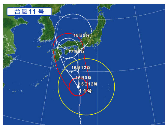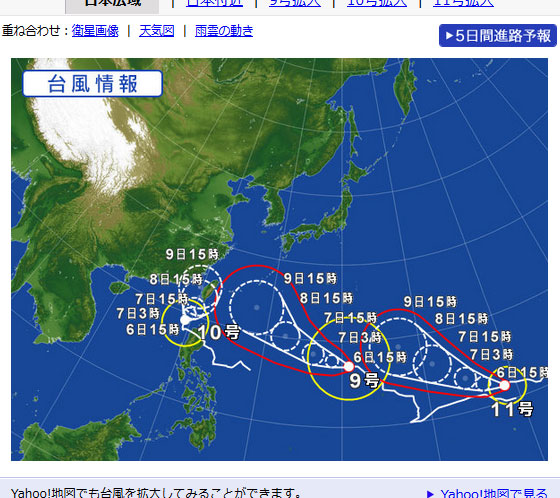 こんにちは。 連続して台風の記事で申し訳ないのですが、台風9号が完全に直撃コースです。 ------------------------------------------------------------- 一時は3つの台風が互いに影響し合い、かなり予測が難しい状態だったようですが、もう完全に9号からは逃れられない予報となっています。 当店が配送を依頼しているヤマト運輸からも、早ければ明日の午前便以降の配送を見合わせる旨のアナウンスがありましたので、もしお急ぎの荷物がありましたら明日の朝(出来れば今晩中)にご注文をお願いいたしますm(_ _)m ...