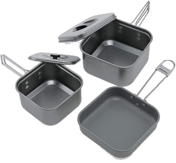 UNIFLAME(ユニフレーム) 山クッカー 角型 3 No.667705 ザックのスペースを有効に使え、デッドスペースが生じにくい角型です。 【セット内容】鍋13、鍋11、フライパン、フタ、収納袋 【サイズ】セット収納時:14×14.7×高さ8.8cm、鍋13:12.7×12.7×深さ7.45cm、鍋11:10.8×10.8×深さ6.4cm、フライパン:13×13×深さ3.4cm 【重量...