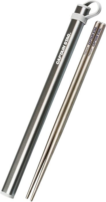 キャプテンスタッグ チタン製 箸 -HASHI- UH-3004 チタン製による軽量化でトレッキングやソロキャンプ、ツーリングに。 耐久性・耐食性に優れているチタン製品。 チタン製箸と携帯に便利なアルミ製ケースセット。 アルミケースのキャップ・底キャップは外せて簡単に洗えるので衛生的。 サイズ(約):箸/長さ23cm、ケース/19×252×厚さ14mm セット重量(約):47g 材質:箸/チタニ...