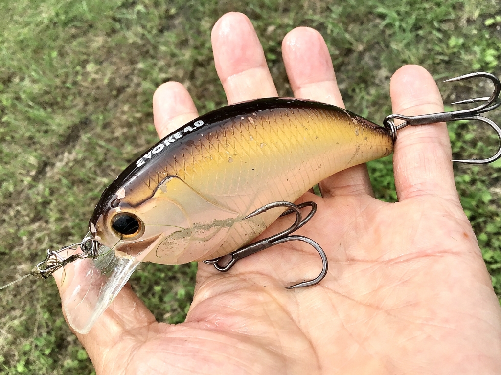 JUGEMテーマ:バスフィッシング 途中全開放流から250tに変更されいた。そのタイミングで護岸の濡れた跡分減水。やはり琵琶湖とは繋がっているのだと実感した。 新作クランクのテストがしたくて午後遅くから淀川へ。洗堰は全開放流なので先週より水位は1メートル以上あがって護岸から10センチくらいまで水面が来ている。護岸の状況からするとマックスの時は水没していた感じ。 気温30℃ 洗堰全開放流から17時に250tに