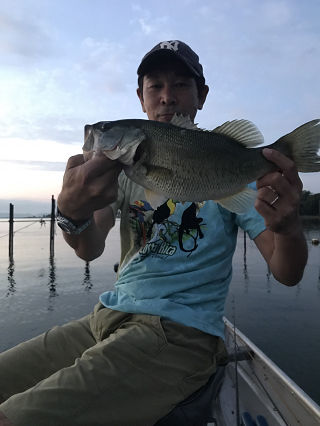 JUGEMテーマ:バスフィッシング 8/19の土曜日にかっちゃんと行ってきました。 風の影響の少ないところということで、Nへ。 漁港南から4:30に出艇し、まずは南のEへ。 4:50頃にさっそくかっちゃんのラドにバイトからの追い食い。 かっちゃん今年のファーストバスは40でした。 幸先いい感じですがバイトは続かず、反対側でS8に食いついたのは44。 その後少し続けますが無反応。 浜を北上しますが、ノーバイト。 K前ではウェーダ...