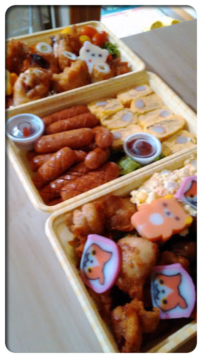 作る予定じゃなかったんだけど…もだけど〜 お墓参りした後に食事してプールとなると せっかく大阪から遥々きてくれてるのに 子供たちが楽しみにしてるプールの時間が 少なくなってまうかなぁ〜とおもい 急遽あるもので弁当作ることにしたの〜 出かける矢先にバタバタと 6人前の弁当なんで仕出しやなみの 汗かき潮吹きモードざましたわ 27年来の心友もあたしの料理食べたことない って前に合ったとき愚痴ってたし いろいろお世話になってるしがんばったわさ お子ちゃま用の...