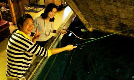 喘息児水泳教室の事後報告会を終えて 指導員のみなさん、事務局のみなさんと一緒に 打上げをしました。 会場は亀戸にあるお店 水槽で泳ぐ魚を釣り上げ 料理してもらうというオモシロい店です。 まず、初めて釣りをするという本間先生が 大きなシマアジを釣りました。 私が釣った鯛は、お刺身に・・ ヒラメのお刺身やエビ、鯛の酒蒸しなどをつまみに みんなで 楽しいお酒を飲みました。 JUGEMテーマ:水泳