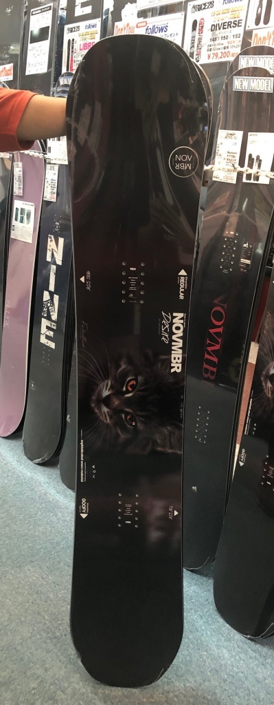 JUGEMテーマ:スノーボード もうすぐ夏ですが・・・ フォローズ岐阜店 19-20スノーボードもズラリ展示中です。 今回ご紹介するのは・・・ まもなく完売!? フォローズ限定カラー November(ノベンバー)スノーボード フォローズ限定カラー NOVEMBER(ノベンバー)スノーボード DESIRE(デザイア) 詳細はこちら まずは 通常モデルはこちら 19-20モデルもグラフィックは猫 今年は山猫ですね コンセプトと...