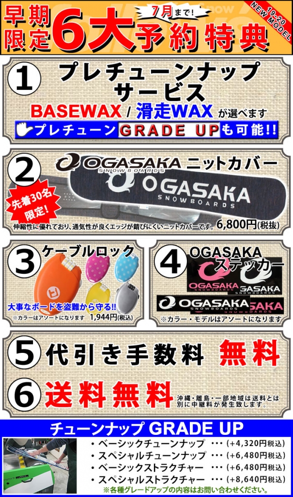 JUGEMテーマ:スノーボード 今だけの限定特典!! OGASAKAニットカバーがついてくる♪ 国産ボードNo.1メーカー OGASAKA 強化月間!!です!! OGASAKAのフリースタイルボード 予約特典が変更になりました! せっかくの国産ボード 大事に長く、大切に乗ってほしい…そんな思いが詰まった特典内容になっています! ?プレチューンナップ無料!! BASE WAXもしくは滑走WAX仕上げです。 おススメはもちろん滑走WAX仕上げ!! フォロー...